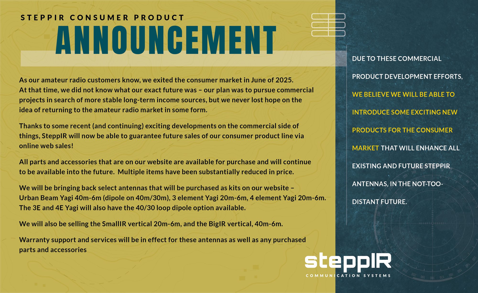 Welcome to SteppIR, the leading provider of amateur ham radio antenna systems